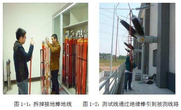 拆掉接地棒上的地線,以便接上儀器測(cè)試線,需拆3根接地棒,如圖1-1;
